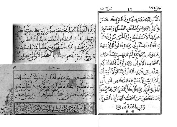 Dass er glaubt, dass man 1978 aus Pakistan Druck­platten nach Johannes­burg trans­portierte, um einen Tāj-Ausgabe nachzu­drucken, zeigt, dass er von Drucktechnik null Ahnung hatte, weshalb ich die vielen Anmerkungen zu diesem Aspekt völlig ignoriere (wenn ich die von ihm kon­sultierten Ausgaben zur Hand hätte oder von ihm erfahren könnte, worauf er seine Bemerkungen stüzt, wäre es anders.)